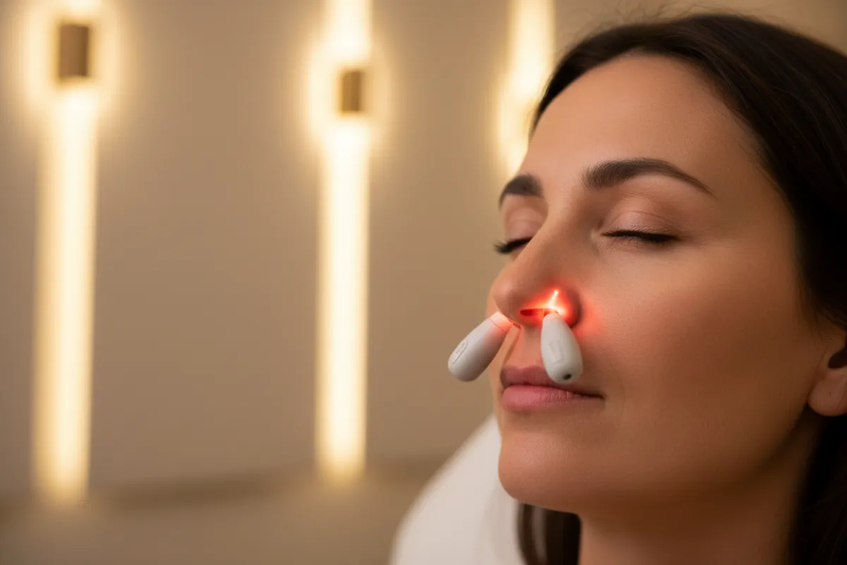 De Vielight intranasale PBM gebruikt gericht rood en nabij-infrarood licht (810 nm) dat via het neusslijmvlies de hersencirculatie bereikt. Het licht stimuleert mitochondriën in hersen- en endotheelcellen direct.